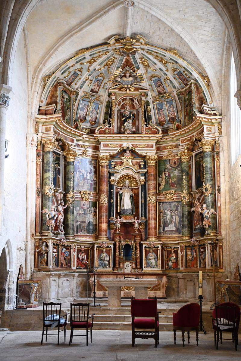 En el interior destaca la altura del templo, conseguida utilizando los arcos tardorrománicos para levantar a mayor altura las bóvedas de crucería. Destaca su retablo mayor de estilo barroco obra de José Carcedo, cuya arquitectura enmarca tablas hispano-flamencas de finales del siglo XV, obra de Alonso de Sedano, que representan la vida de San Millán de la Cogolla. Notable es también el artesonado gótico-mudéjar del coro, en el que aparecen escenas campestres y cinegéticas además de escudos y motivos vegetales. Se conservan también retablos de los siglos XVII y XVIII y la caja barroca de un órgano hoy desaparecido.